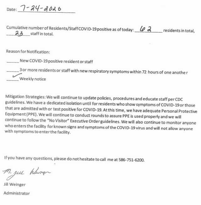 Cumulative # of Residents/Staff who are COVID + in house today: 7